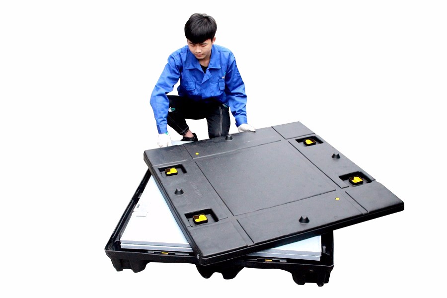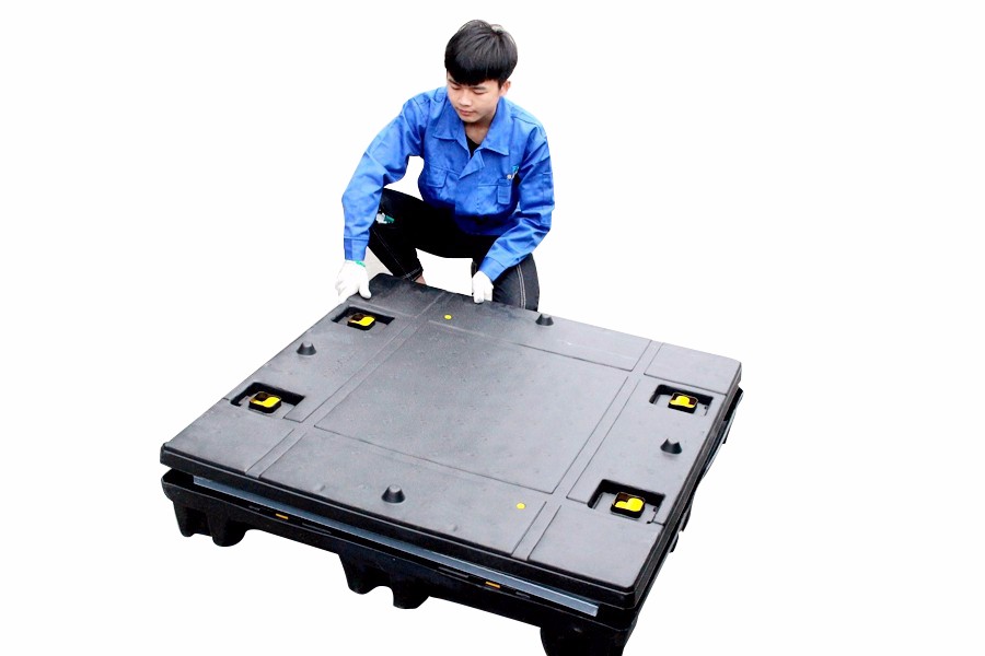 4、運輸時可將圍板折疊起來擺放在托盤上,大大地減少貯運體積,有效的降低運輸成本。